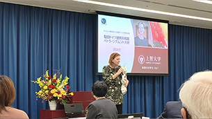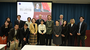 ドイツ文学科とヨーロッパ研究所の主催により、駐日ドイツ連邦共和国大使ペトラ・ジグムント氏による講演会「中国から日本へ」を開催しました。会場には100名以上の学生・教職員・一般の来場者が集まり、熱気のある雰囲気の中、ジグムント大使による政治外交の基本的な捉え方、ヨーロッパから、そしてドイツから見たアジア戦略の変遷など、貴重な知見を得ることができました。なかでも、重要な職務を遂行しながら、母親でもある自身の在り方、キャリア形成についてのお話しは、これから進路を切り拓く学生たちに、大きな勇気を与えてくれました。