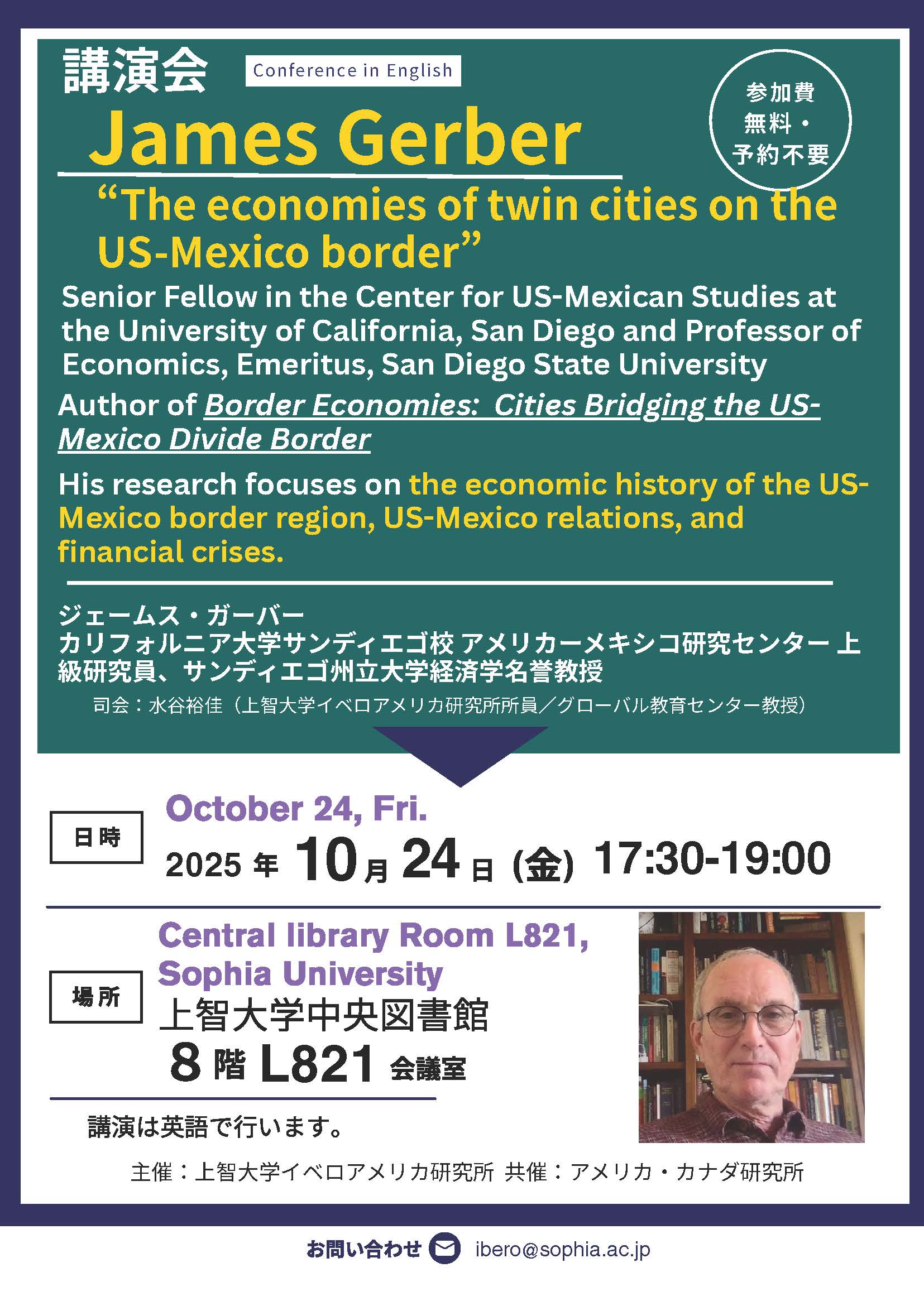 Lecturer | James Gerber (Sinior Fellow in the Centerfor and Professor of Economics Emeritus, Sun Diego State University) |