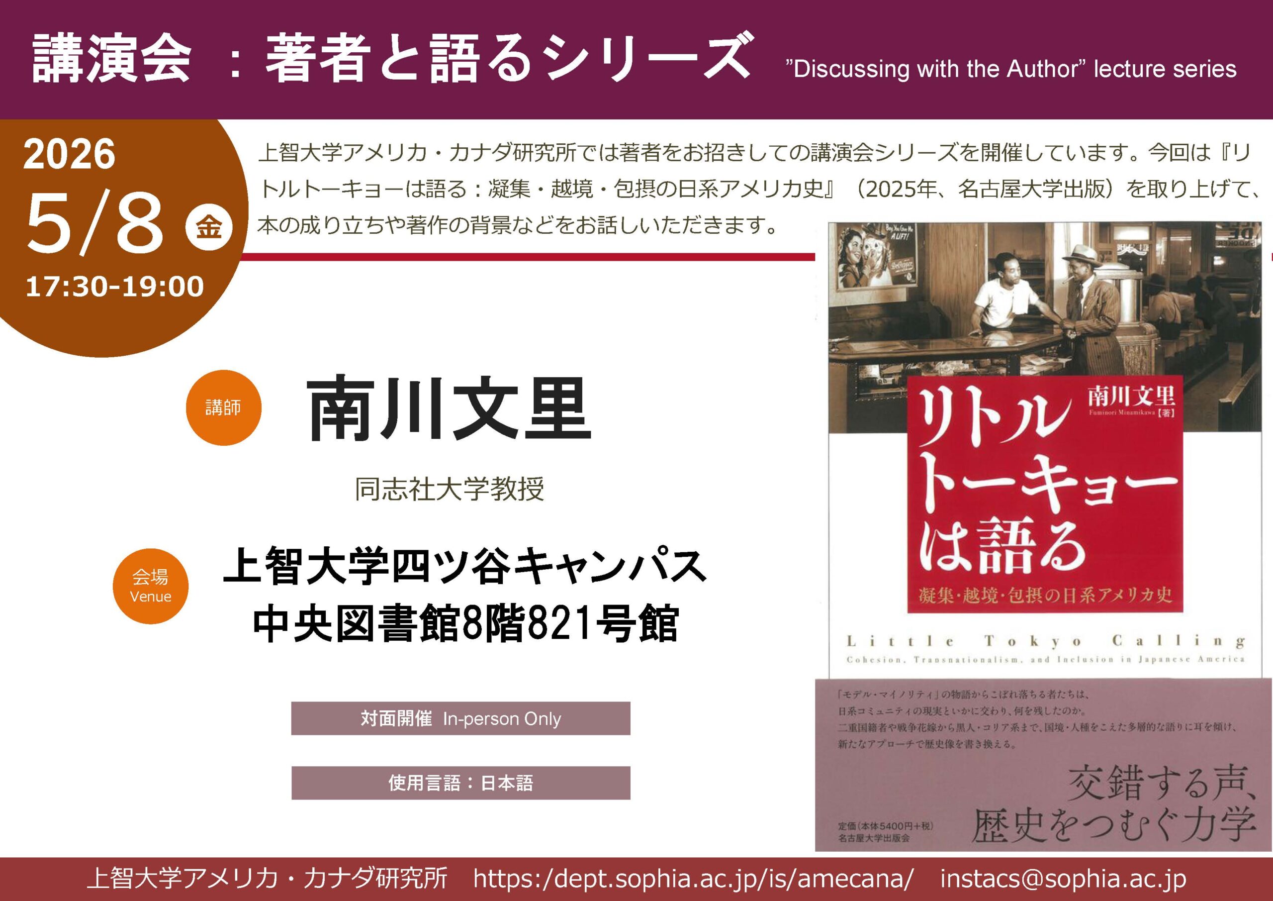 【講演会】著者と語るシリーズ 『リトルトーキョーは語る:凝集・越境・包摂の日系アメリカ史』