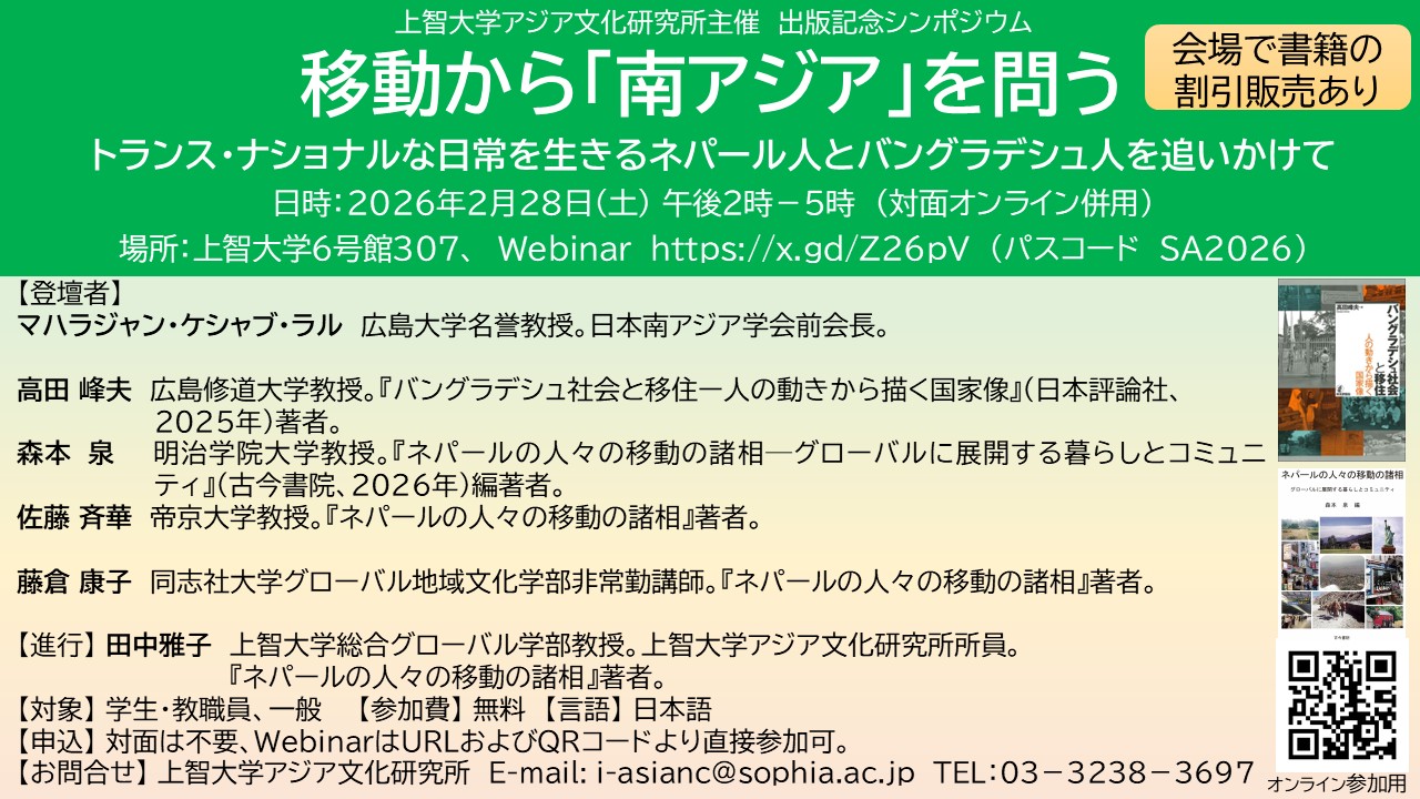 Publication Commemorative Symposium: Interrogating 'South Asia' through Mobility-Transnational Everyday Lives of Nepalis and Bangladeshis- will be held on Saturday, February 28, 2026.