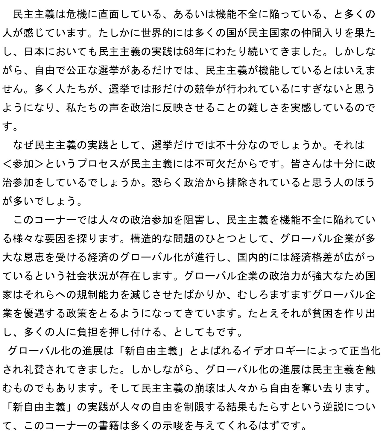 ポスト・デモクラシー : 格差拡大の政策を生む政治構造 コリン・クラウチ 青灯社2007 [IGC - 311.7:C93]