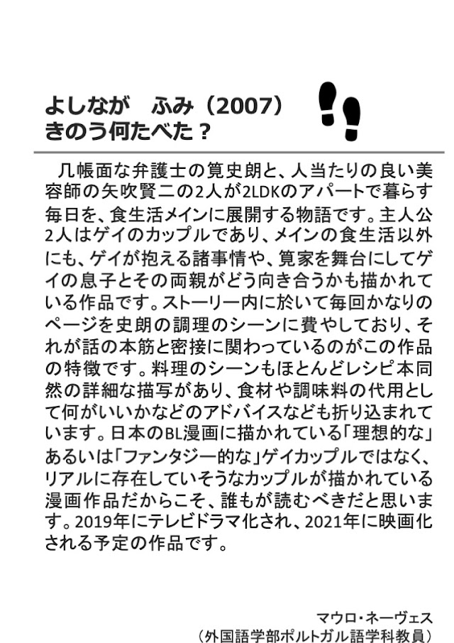 | きのう何食べた? (漫画) | よしながふみ | 講談社 | 2007 | ||