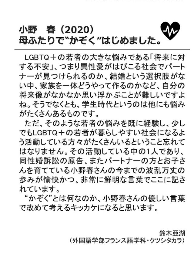 | 母ふたりで”かぞく”はじめました。 | 小野春 | 講談社 | 2020 | ||