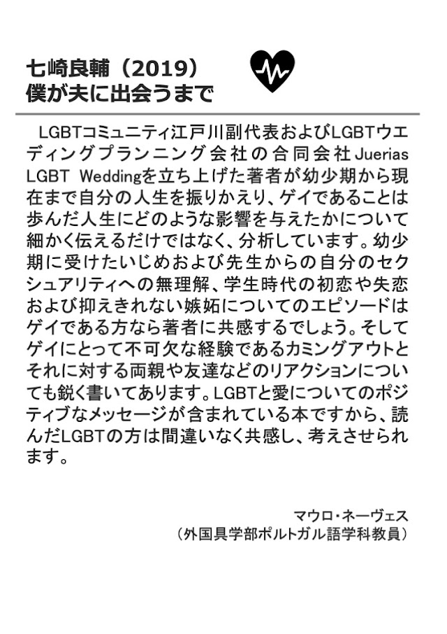 | 僕が夫に出会うまで | 七崎良輔 | 文藝春秋 | 2019 | ||