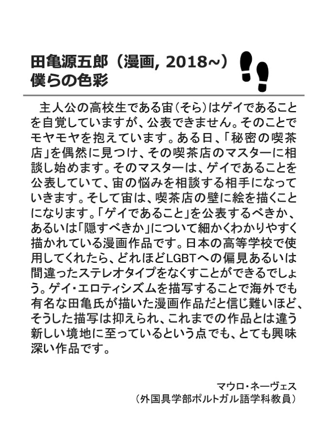 | 僕らの色彩 (漫画) | 田亀源五郎 | 双葉社 | 2018 | ||
