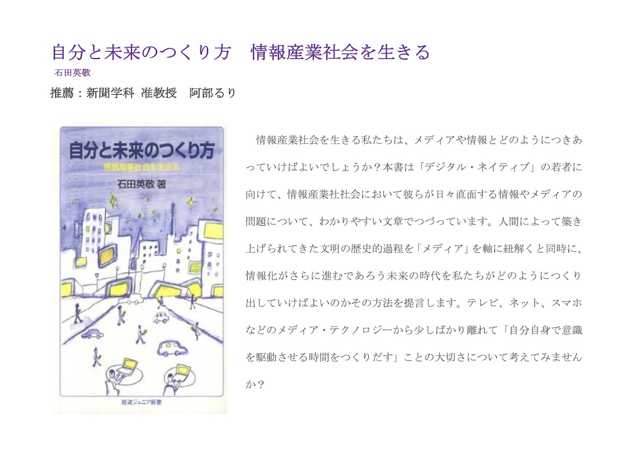 | 自分と未来のつくり方 : 情報産業社会を生きる | 石田英敬 | 岩波書店 | 2006 | [IGC - 007.3:I72] | |
