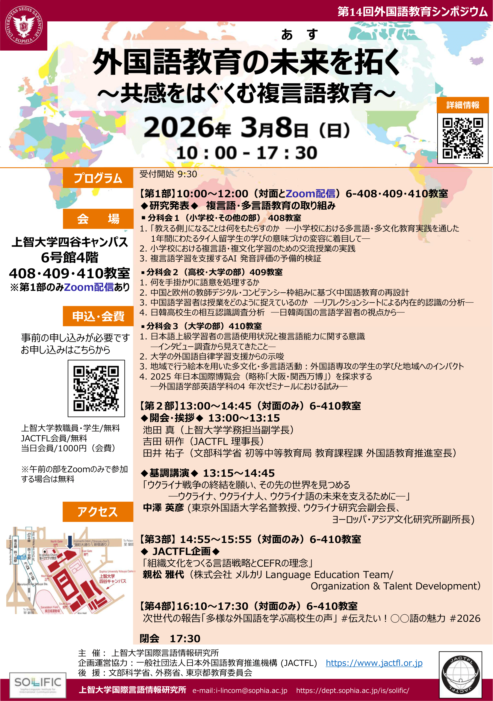 | 会場(対面開催) | ▶上智大学四谷キャンパス6号館4階 408室、409室、410室 |