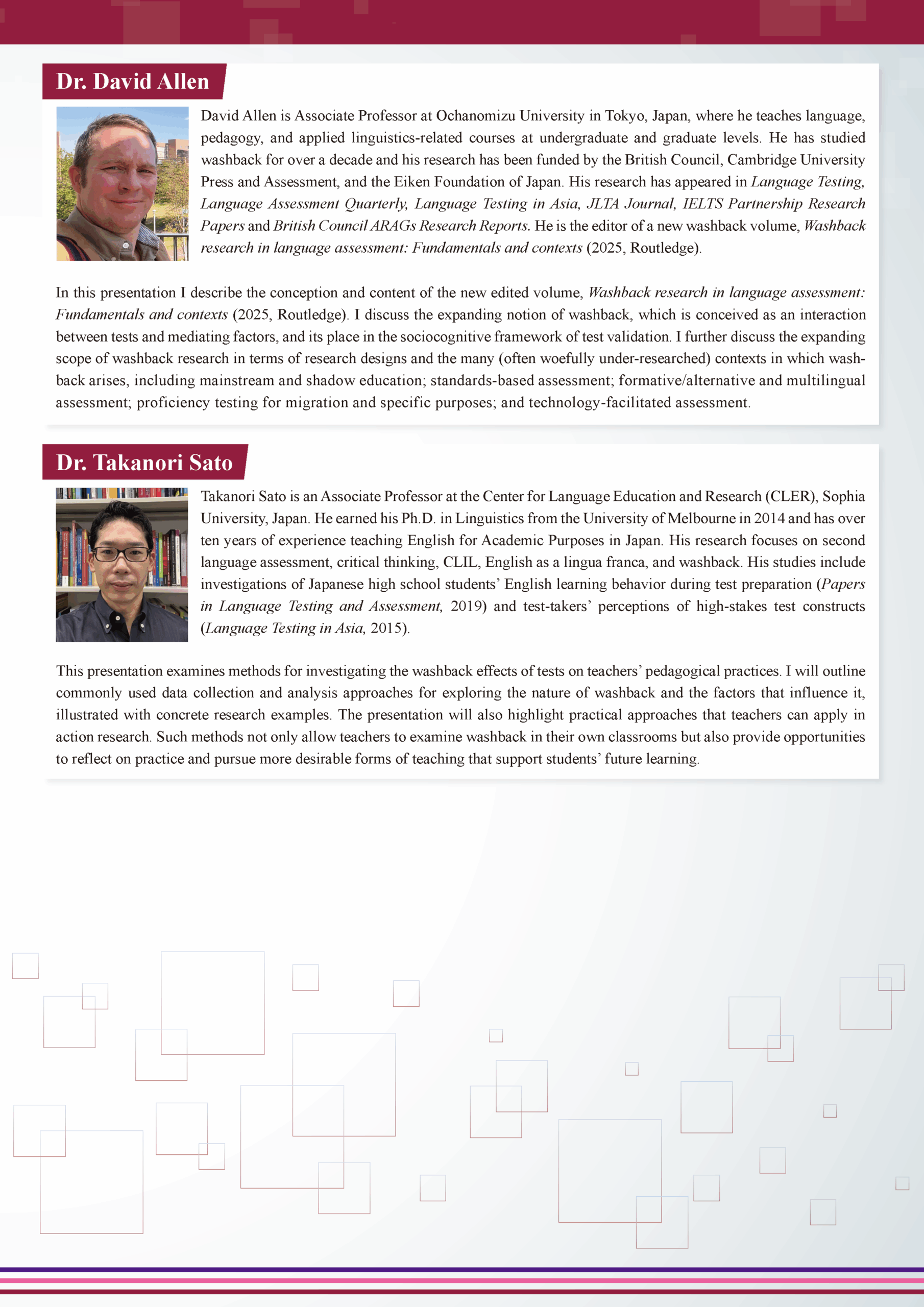 17:05 – 17:55 Expanding the Scope of Washback Research: